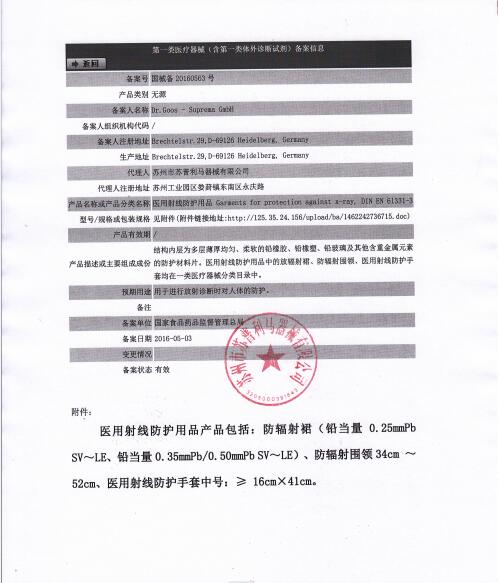 蘇州市蘇普利馬器械有限公司是專業(yè)從事醫(yī)用X射線防護系列用品、裝置、代理德國Dr.Goos-Suprema Gmbh.顧斯博士-蘇普利馬有限公司生產(chǎn)的原裝進口鉛衣及醫(yī)用觀片燈的生產(chǎn)銷售企業(yè).生產(chǎn)的X射線防護圍裙均來自美國SHIELDING公司的最新型超薄型防護材料,,具有防護性能可靠、穿戴舒適、輕便柔軟、操作自如等諸多優(yōu)點.產(chǎn)品均通過相關X射線檢測機構的檢測,達到產(chǎn)品標準的要求.X射線醫(yī)用膠片觀察燈。是采用全LFD燈光技術。具有重量輕,光源均勻,亮度高,無頻閃,不變型,使用壽命長等特點。均取得了生產(chǎn)許可及醫(yī)查看更多>>